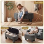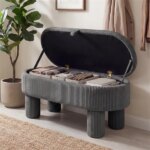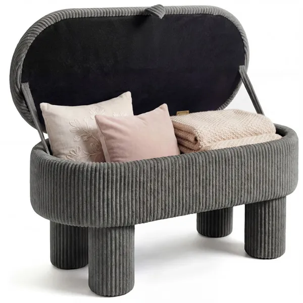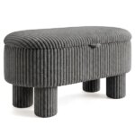 Gray 42 Inch Corduroy Storage Bench, Plush Foam Cushion & Hidden Compartment, 400LBS Seat Weight Capacity