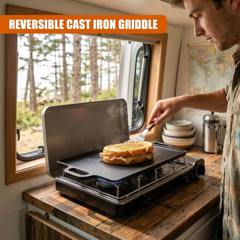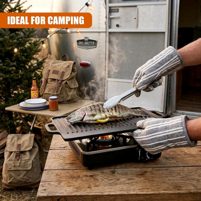 Griddle Plate Cast Iron Reversible BBQ Skillet Fry Pan Grill Double Sided is designed for style, comfort, and everyday use.