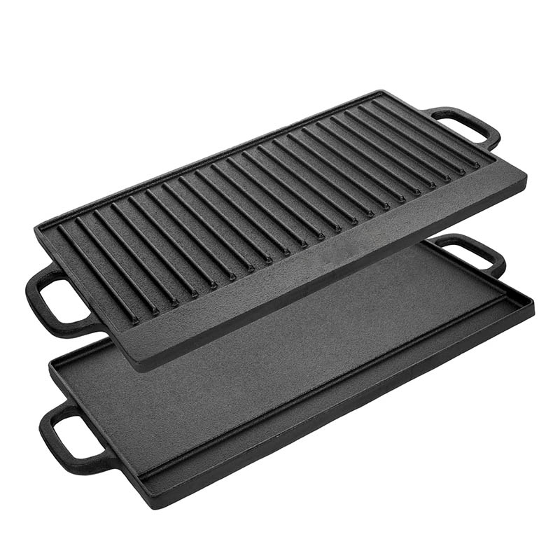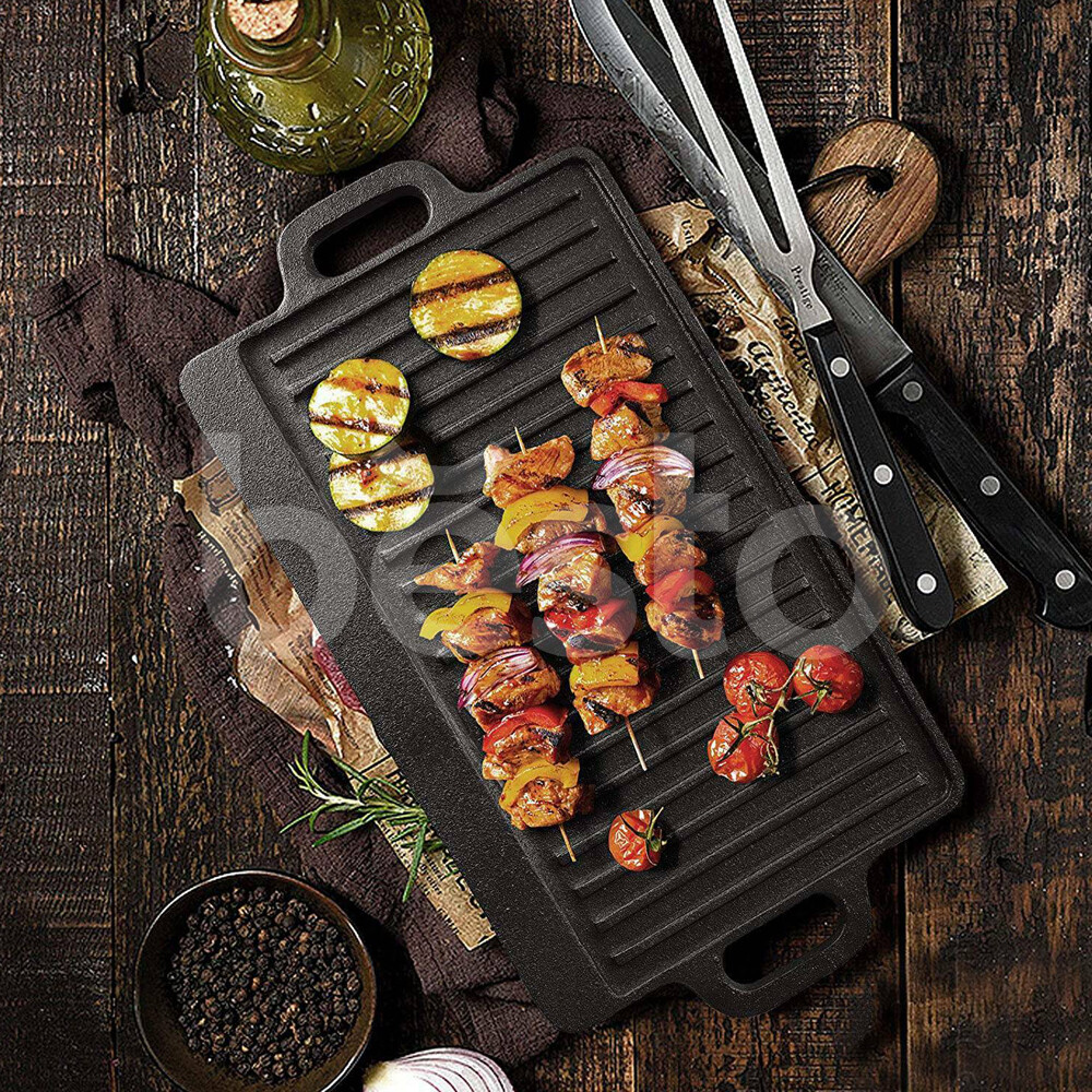 Griddle Plate Cast Iron Reversible BBQ Skillet Fry Pan Grill Double Sided