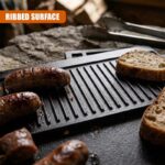 • Master outdoor cooking with this versatile BBQ grill plate. The clever double sided design features a flat griddle on one side and a ribbed surface for better airflow.