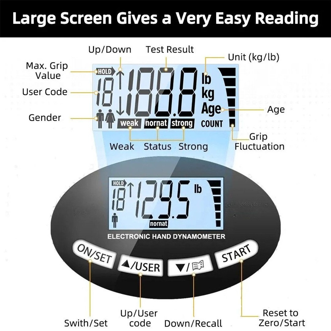 • -Grip Strength Tester 180Kg Digital Hand Dynamometer Grip Strength Tool.