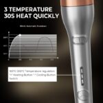 - 【3 Heat Settings & Lasts Over 24 Hours】This curling iron is designed for different hair types and offers precise temperature control. Set it to 160°C for delicate or damaged hair, 180°C for soft or healthy hair, and 200°C for thick or coarse hair. With tourmaline-ceramic technology, it releases millions of negative ions to neutralize static electricity, leaving your hair soft, hydrated, and with enhanced shine.
