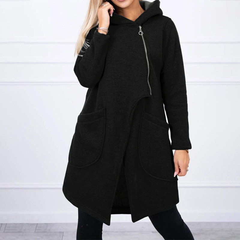 Half-high Neck Side-zip Hoodie With A Hood And Fleece-lined Pockets