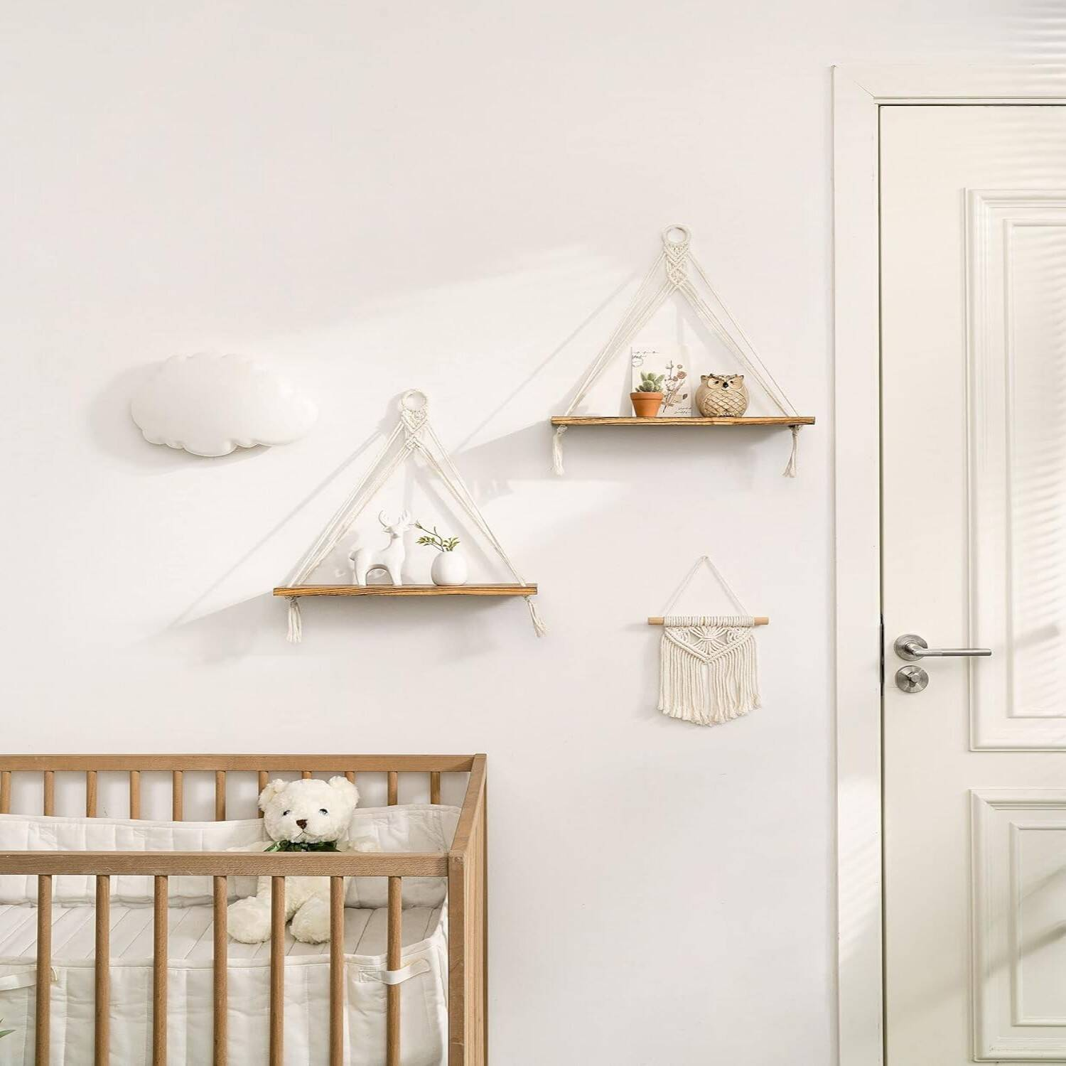 • Introducing Our Artisanal Macrame Hanging Shelves Imagine adding a touch of bohemian elegance to your home while creating practical display space – that’s exactly what our beautifully crafted macrame hanging shelves offer. This exquisite set of two floating shelves combines natural materials with artisanal craftsmanship to create stunning wall decor that transforms any room into a cozy, organized sanctuary.
