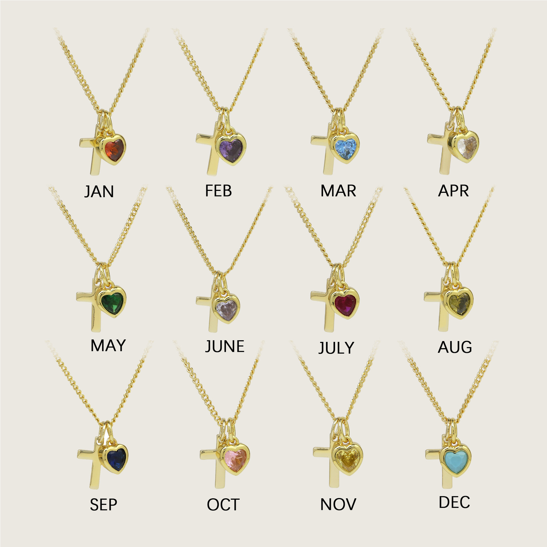 • January Necklace, February Necklace, March Necklace, April Necklace, May Necklace, June Necklace, July Necklace, August Necklace, September Necklace, October Necklace, November Necklace, December Necklace
