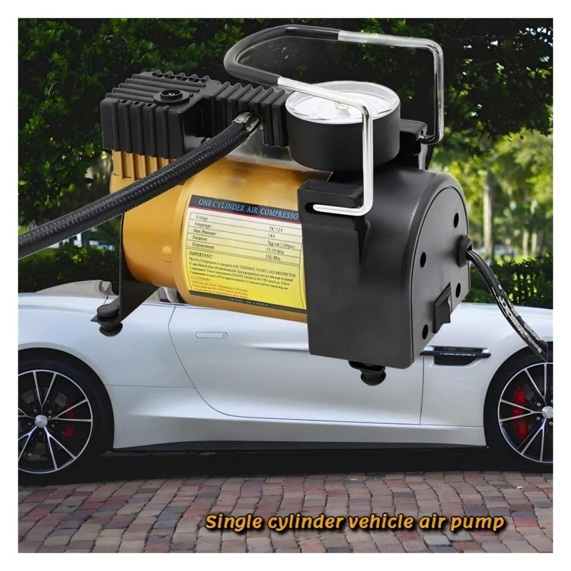 Heavy Duty 12V All-Metal tyre inflator air compressor for Reliable Roadside Use, Fast 150 PSI car tyre inflator with Mechanical Gauge, Durable tyre inflator, Compact car tyre pump and tyre pump, Plug-In car tyre inflator air compressor for Cars, Bikes & Sports Gearb • Built for drivers who value reliability over gimmicks, this heavy-duty tyre inflator air compressor is designed to perform when it matters most. Unlike the majority of portable inflators on the market that rely on plastic housings and lightweight components, this unit features a robust all-metal construction engineered to withstand heat, vibration and repeated use. Whether you keep it in your boot for unexpected roadside situations or use it regularly to maintain correct tyre pressure, it delivers the reassuring solidity of a true automotive tool rather than a disposable gadget.