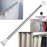 Heavy Duty Extendable Telescopic Shower Curtain Pole Rail Rod Bath Door Window • A high quality, non-rust, self supporting curtain rail rod. • Multipurpose and retractable, does no damage to walls or doors or windows.
