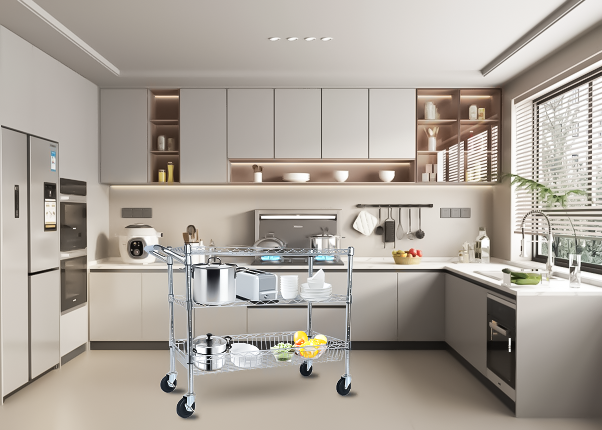 Heavy Duty Rolling Utility Cart,3 Tier Rolling Carts With Wheels,with Handle Bar & Shelf Liners,36inchx18inchx32inchStorage Cart For Kitchen,Restaurant,Plant Display,Chrome is designed for style, comfort, and everyday use.