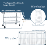 • Heavy Duty Rolling Utility Cart,3 Tier Rolling Carts with Wheels,with Handle Bar & Shelf Liners,36″x18″x32″Storage Cart for Kitchen,Restaurant,Plant Display,Chrome