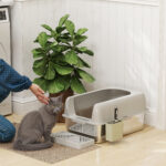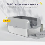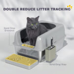 High Sided Stainless Steel Litter Box with Metal Scoop & Scoop Holder, for Easy Clean& Anti-Urine Leakage, Light Gray