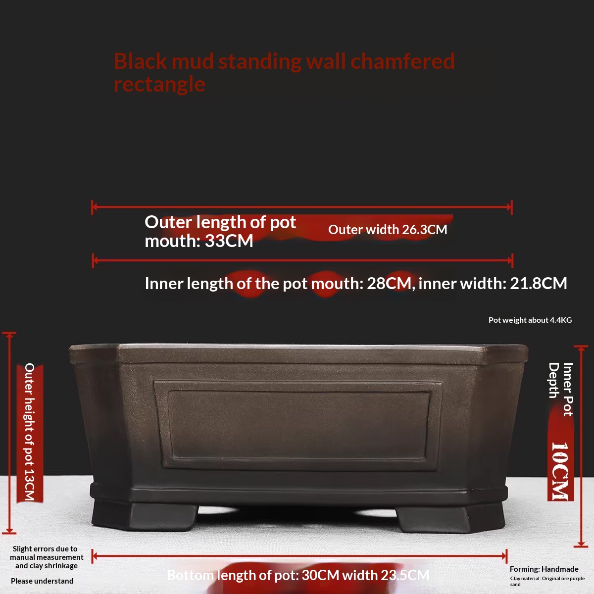High-temperature Kiln-transformed Rectangular Purple Clay Bonsai Pot With Chamfered Corners