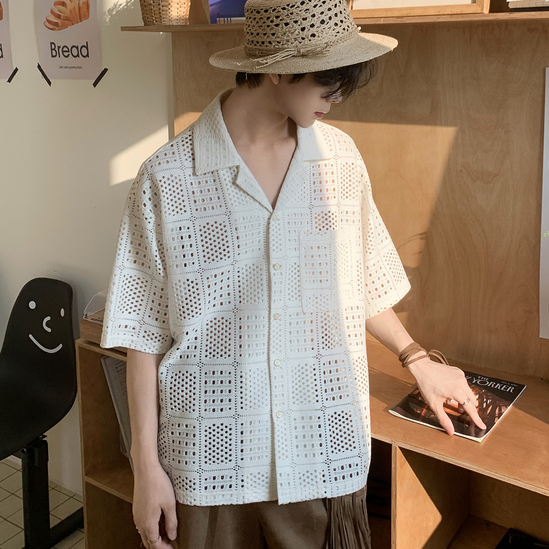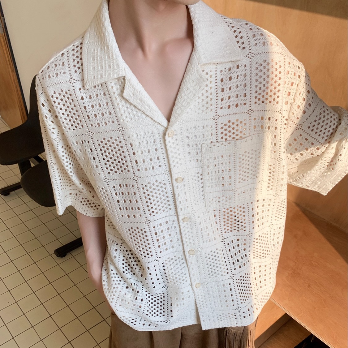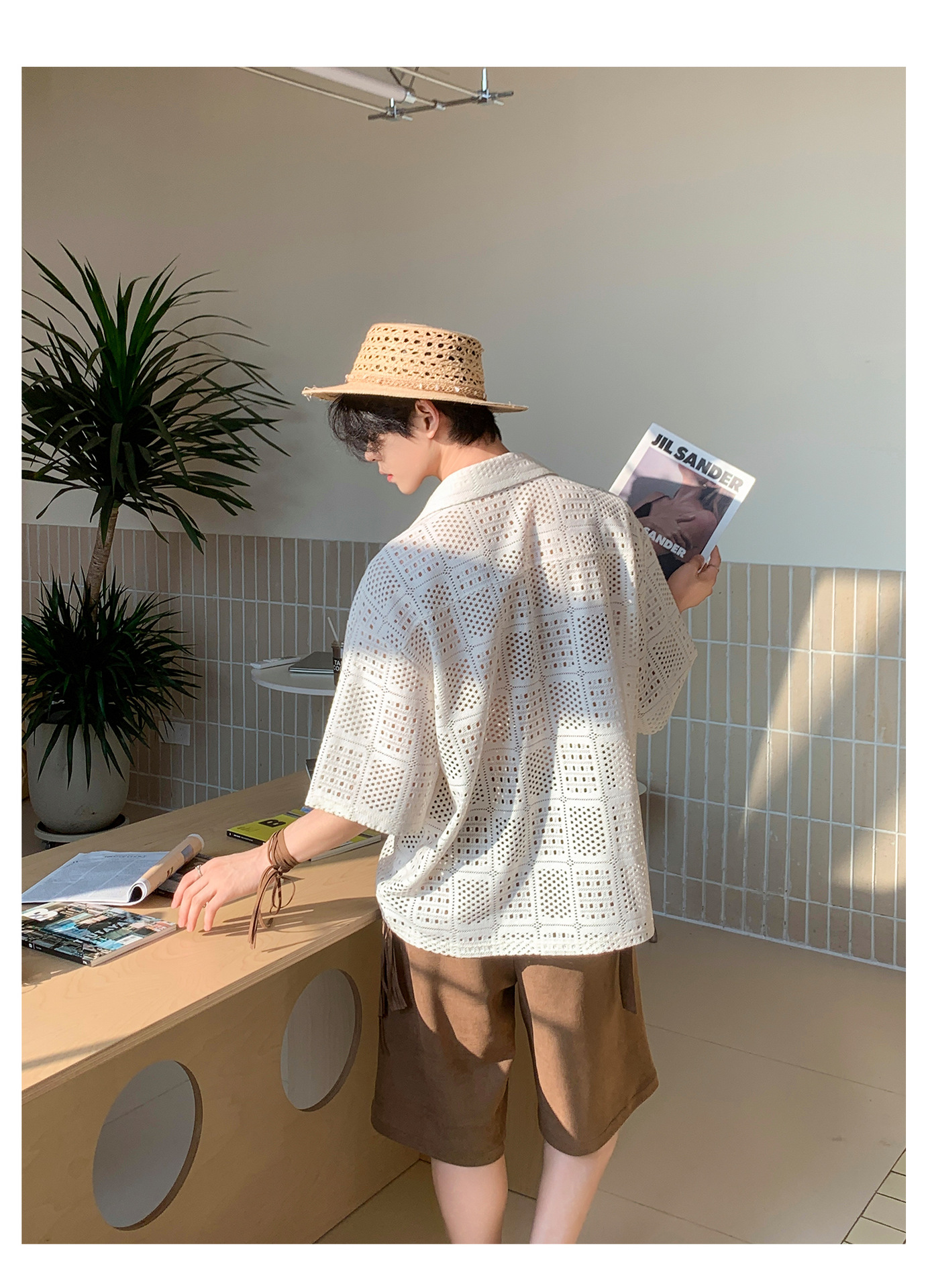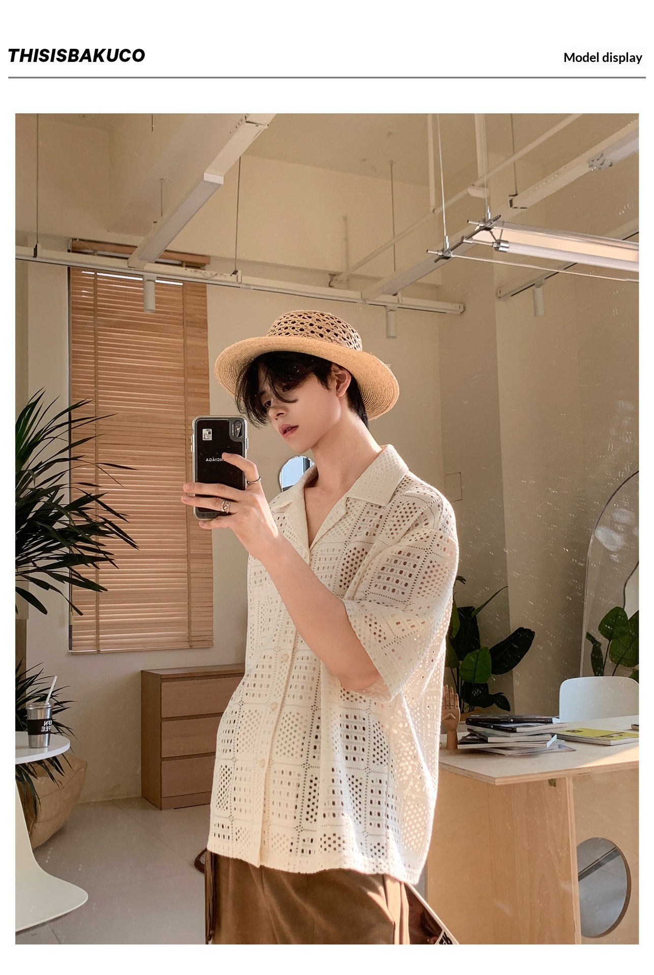 Hollow-out Loose Solid-color Mens Shirt is designed for style, comfort, and everyday use.