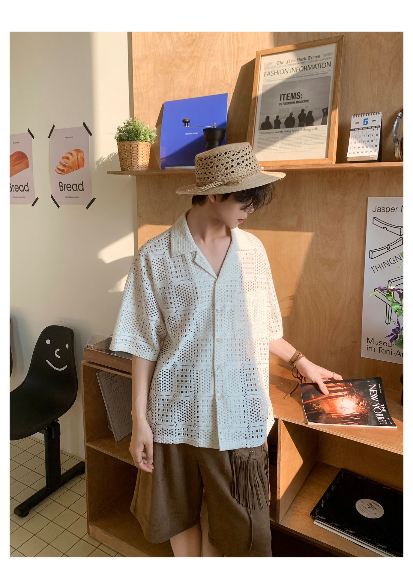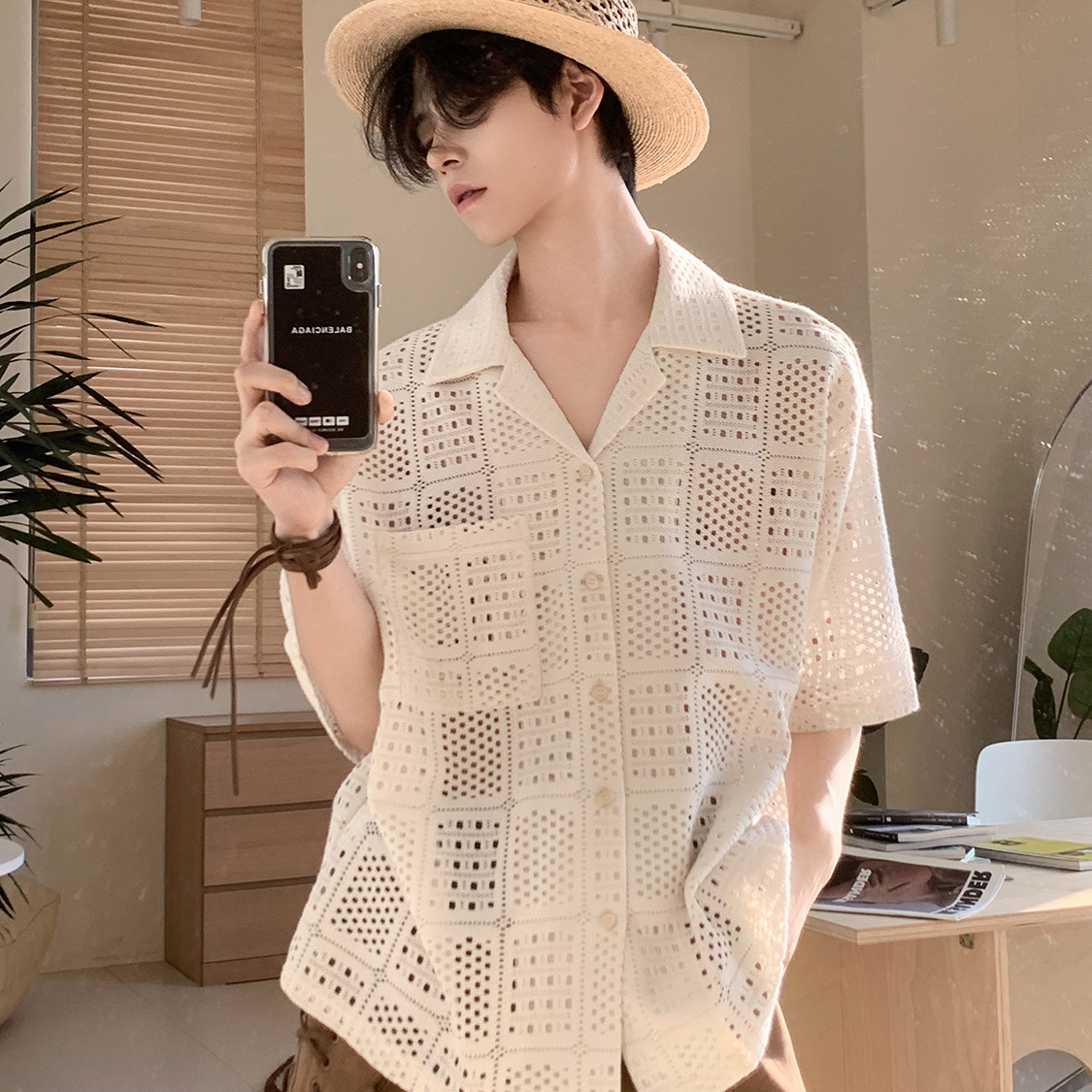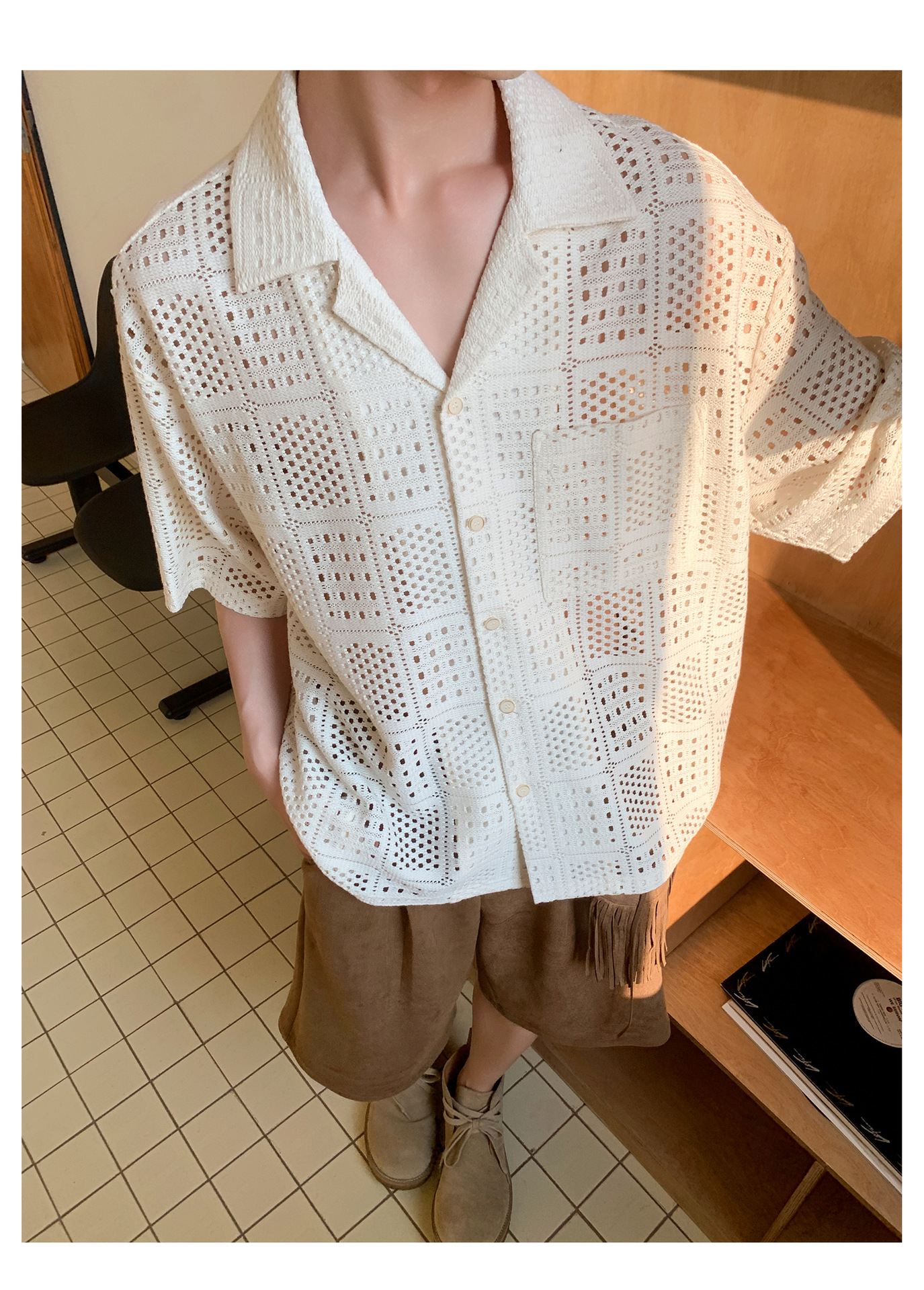 Hollow-out Loose Solid-color Mens Shirt is designed for style, comfort, and everyday use.