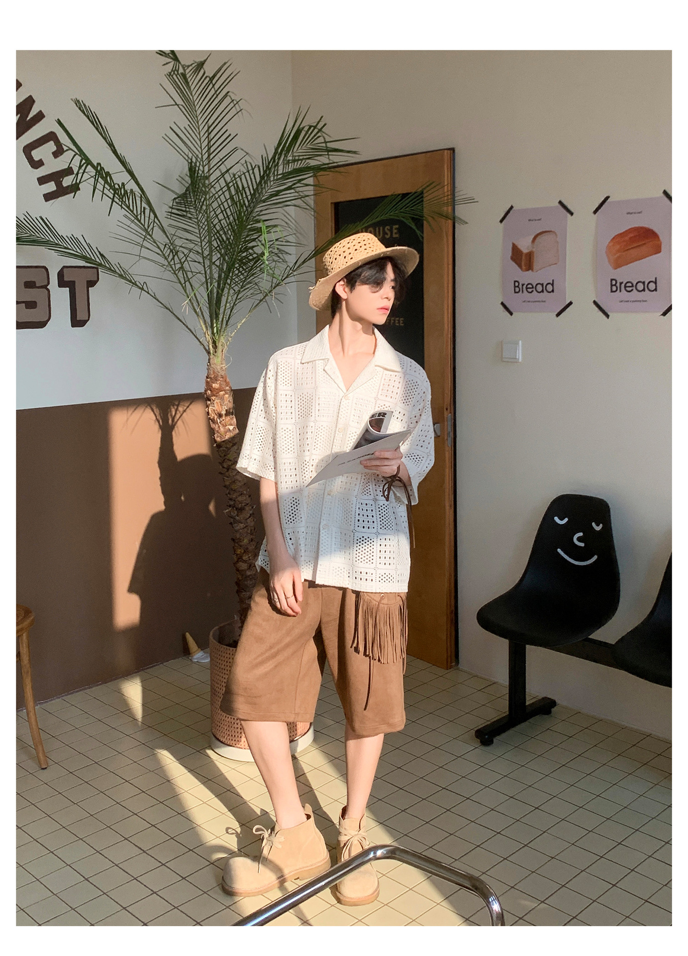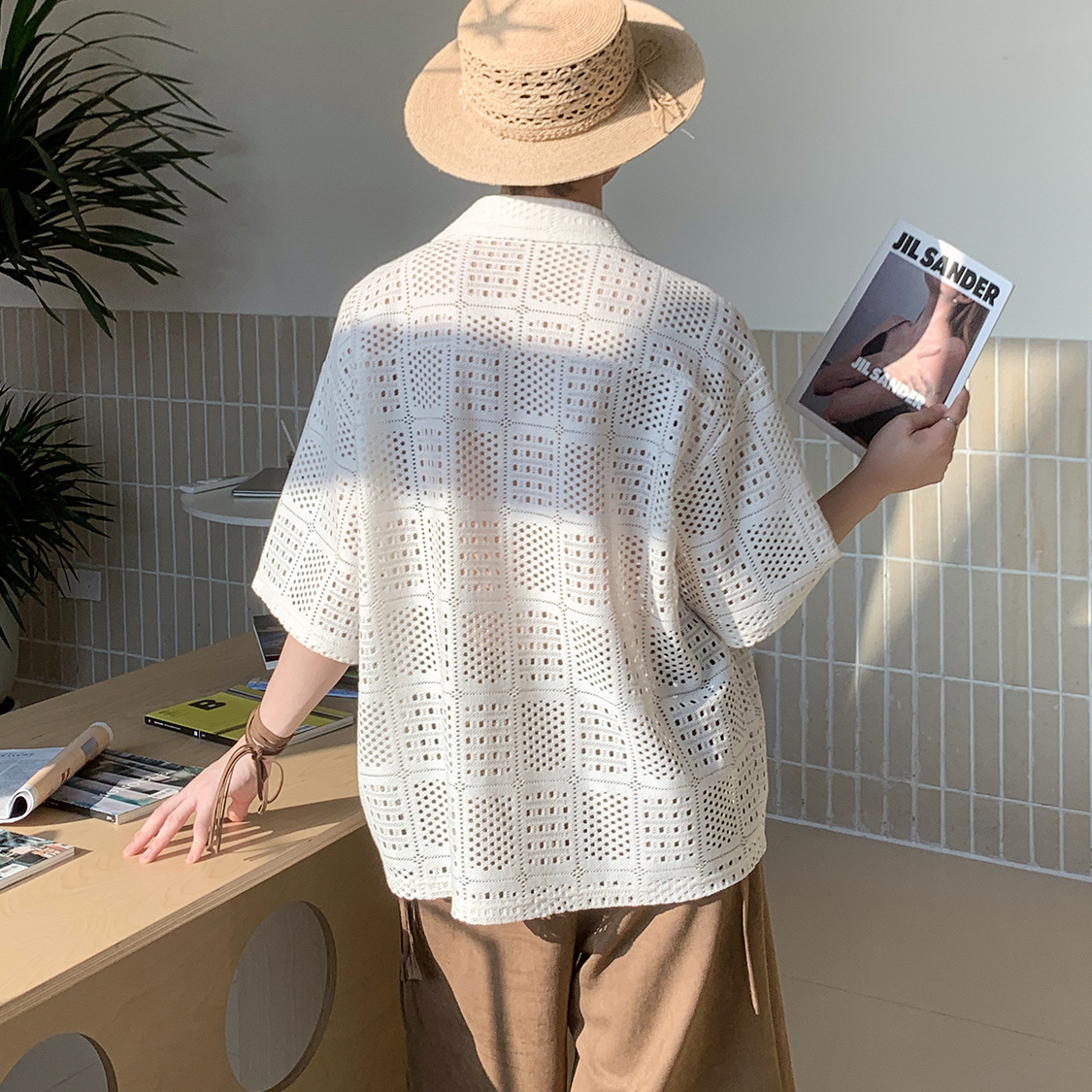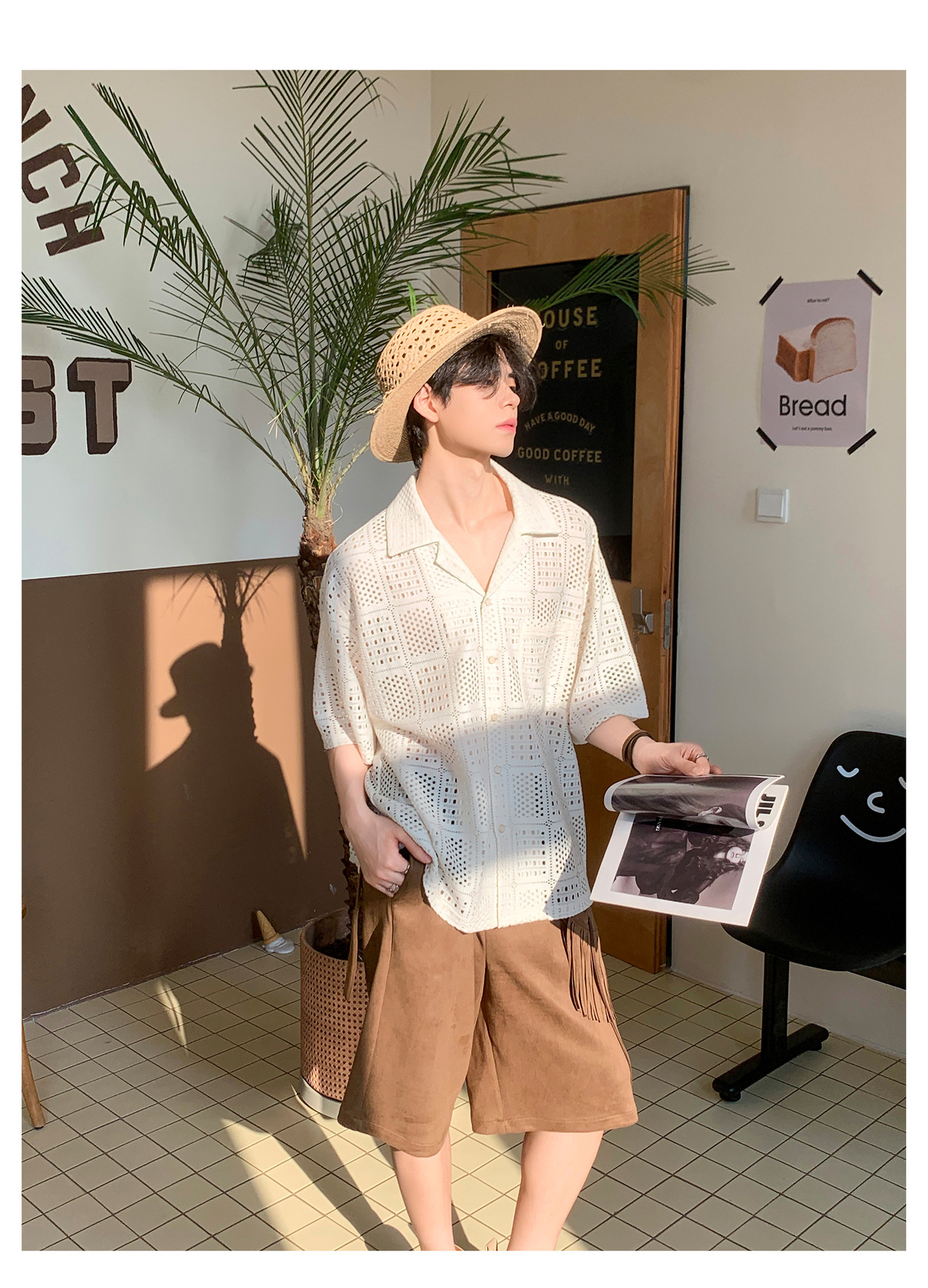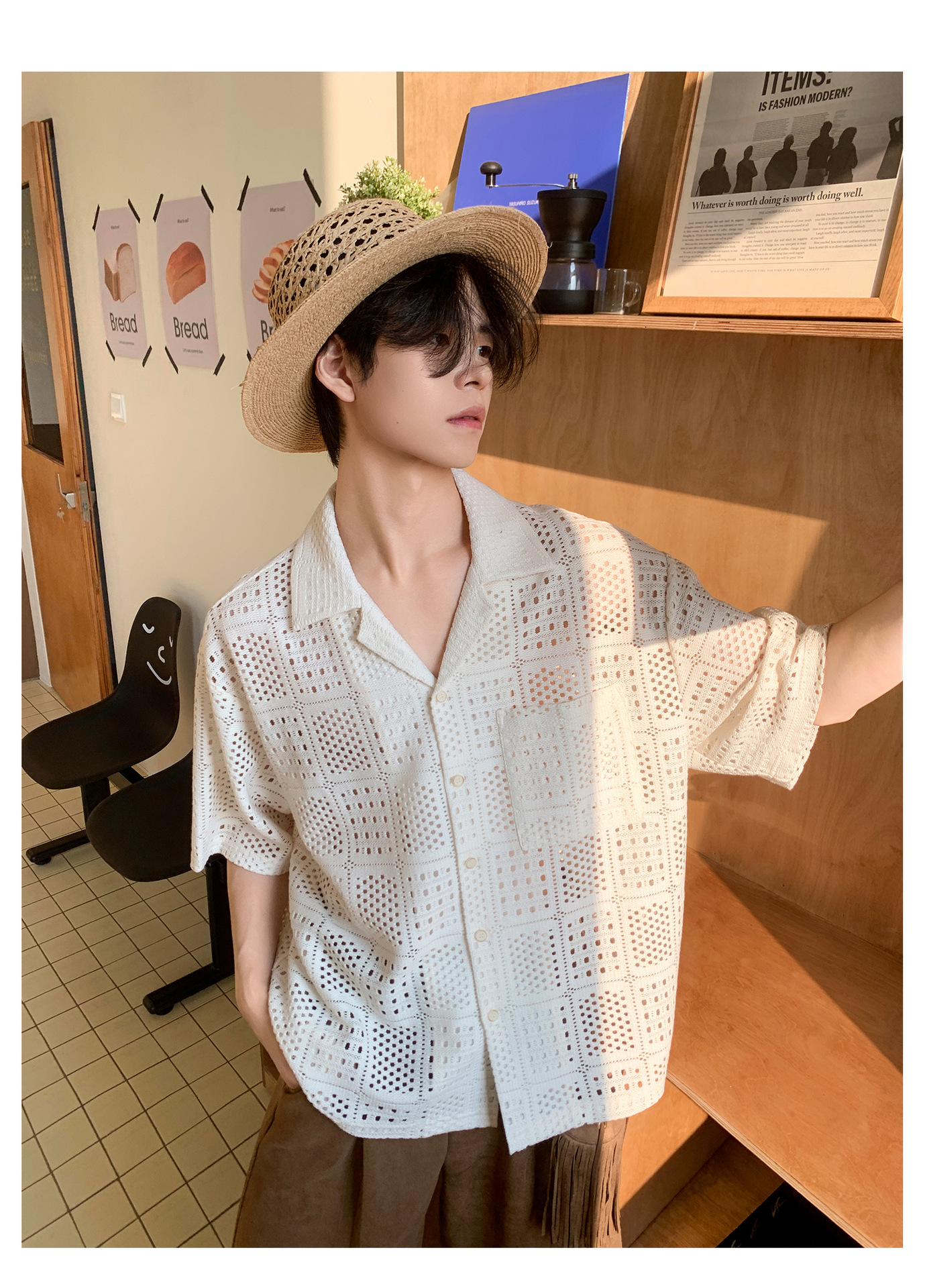 Hollow-out Loose Solid-color Mens Shirt is designed for style, comfort, and everyday use.