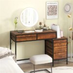 Home Office Dual Desktop Desk With 5 Storage Drawers, Powder-Coated Metal Frame Engineered Wood