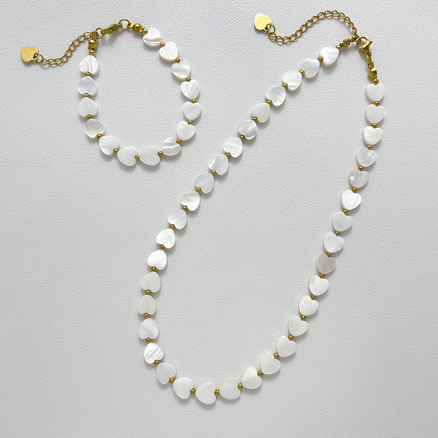 INS Heart-Shaped Shell Necklace And Bracelet Set Commuter Fashion Handmade Beaded Design