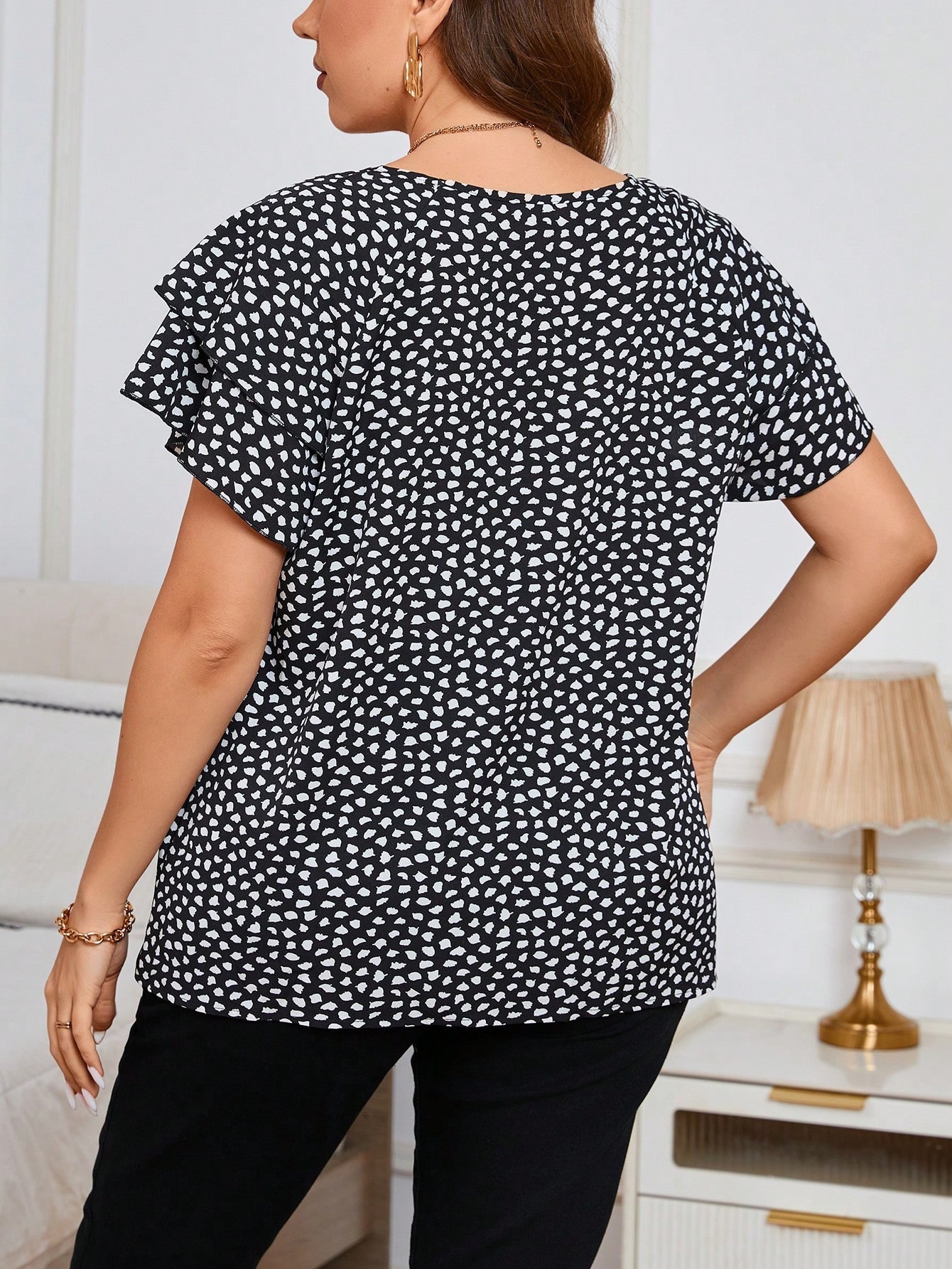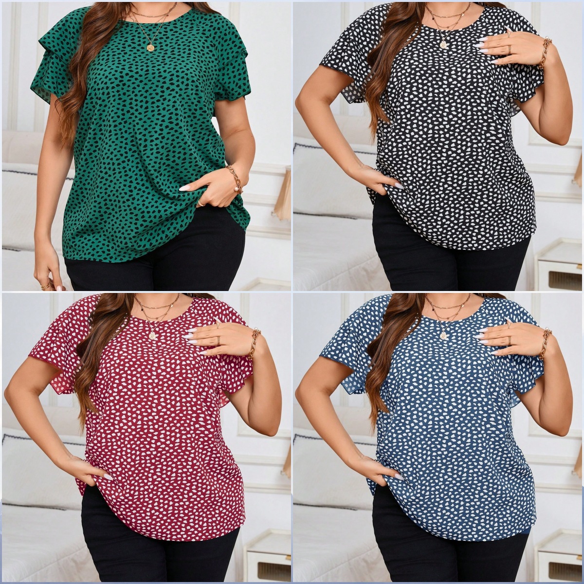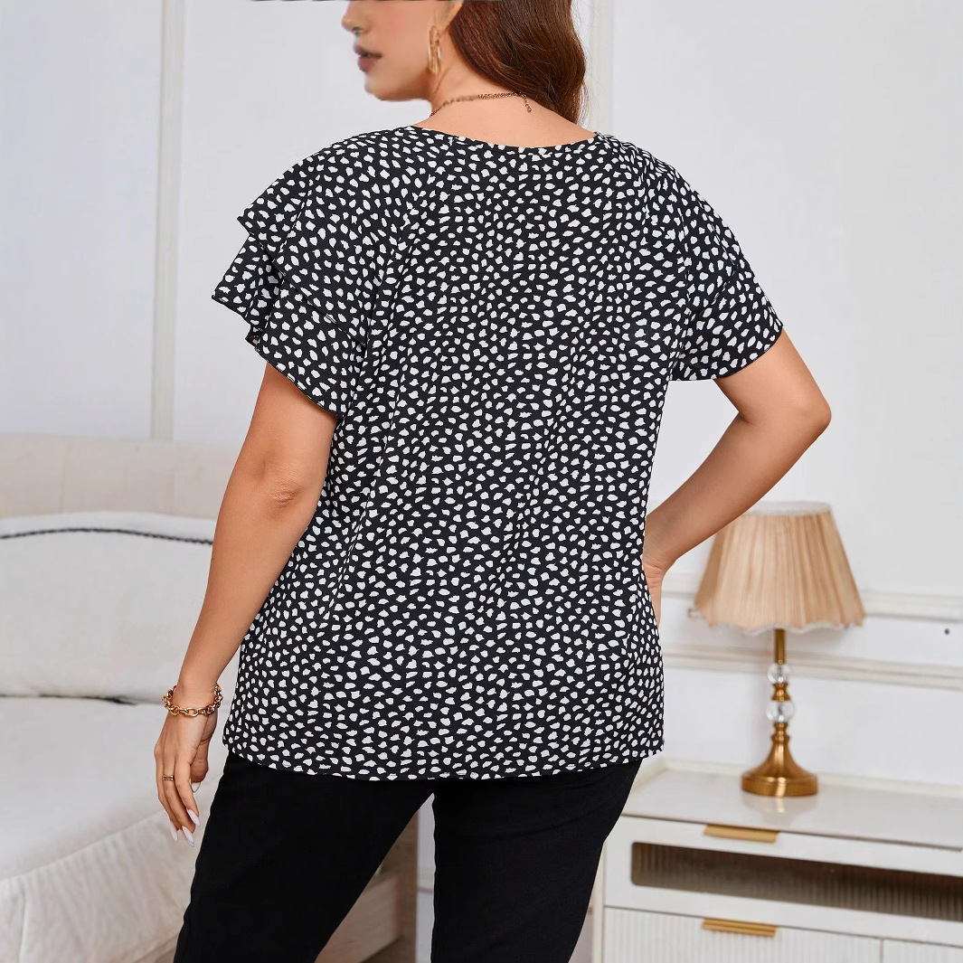 Irregular Polka-Dot Print Casual Crew-Neck Short-Sleeve is designed for style, comfort, and everyday use.