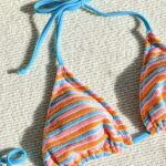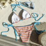 Jacquard Striped Colorful Tied Two-piece Thong Bikini