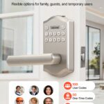 Keyless Entry Door Lock With Handle, Electronic Lever Door Handle With Keypad, Customizable User Codes, Keyed Entry, Auto Lock, Anti-Peeking Password, Backlit Keypad, For Home, Satin Nickel