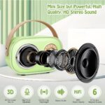 Kids Karaoke Machine, Karaoke Toys for Kids & Adults with 2 Microphones, 6 Voice Changing Effects, Girls Toys Age 3-15 Year Old, Halloween Christmas Birthday Gifts for Kids Girs Aged 3-18 (Green) • This retro Bluetooth speaker combines vintage elegance with cute pink/green colours to take you back to nostalgic memories of the past. With a portable design that takes up little space and a battery life of up to 8 hours, it’s perfect for family outings, house parties, meetings and any gathering. • The wireless microphone has a built-in 10W speaker designed to produce sound optimised for high performance. The wireless microphone has 6 magical voice effects including Acoustic, Karaoke, Monster, Female, Male, Baby, perfect for duets and dancing. Its advanced active noise cancellation technology and professional DSP audio processor ensure that every word you sing sounds perfect.
