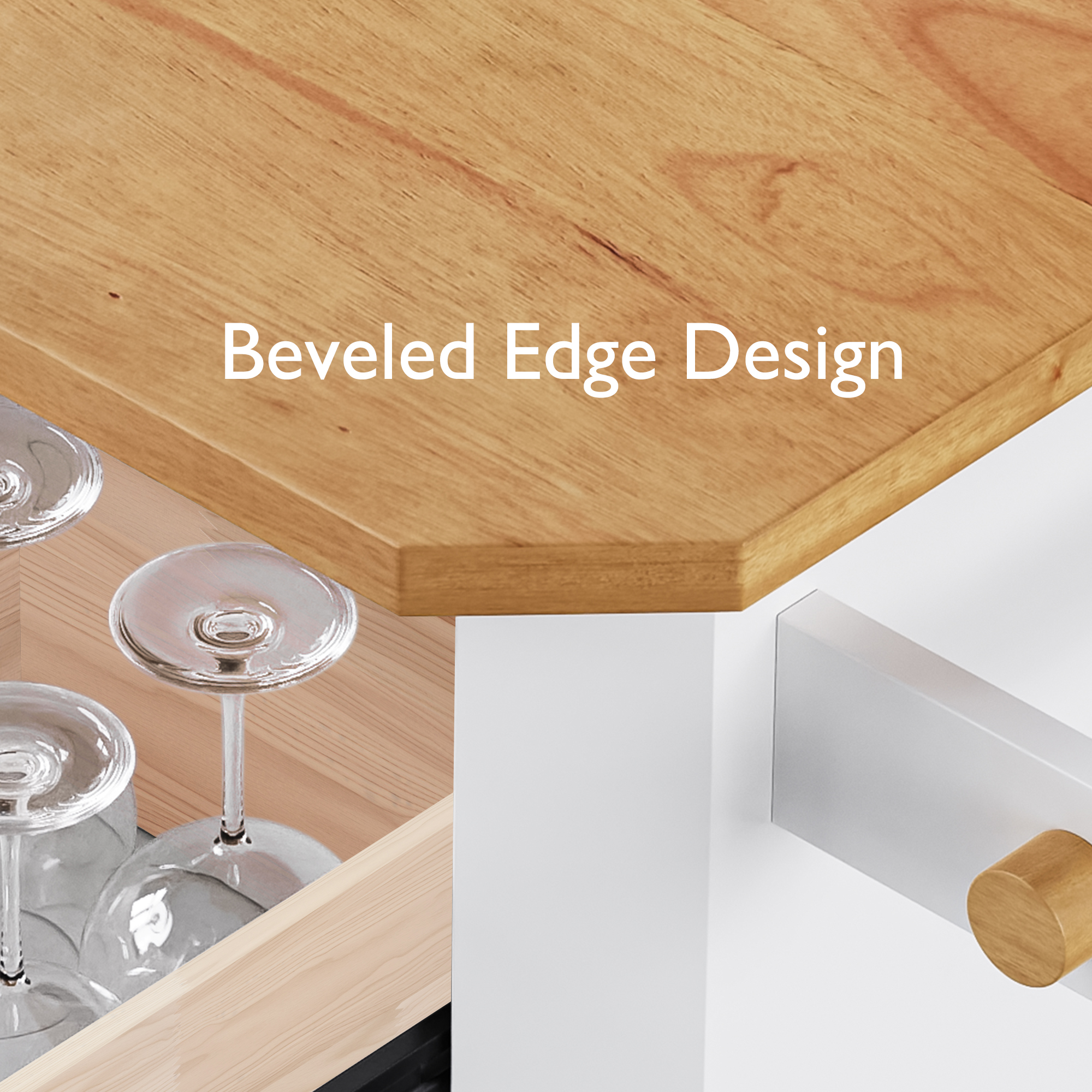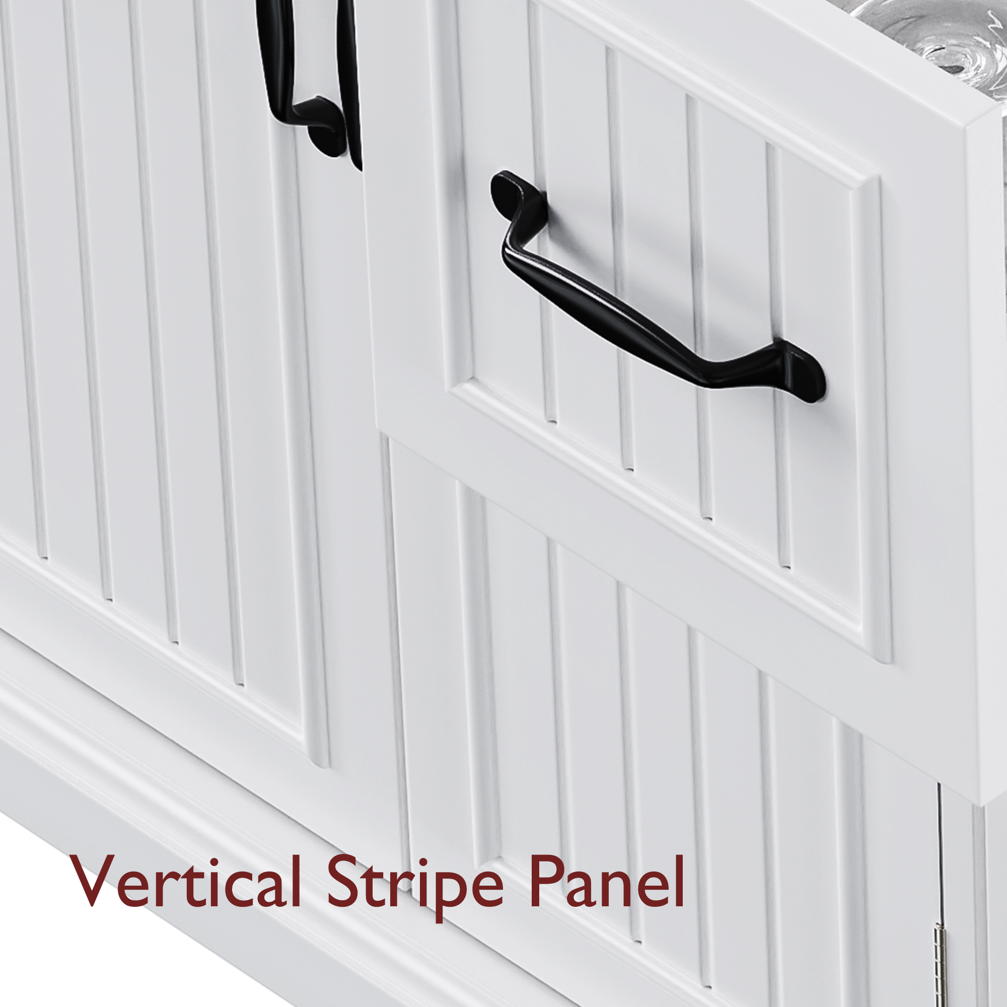 [Unique Beveled Edge Design][Unique Feet Design With Stably Foundation][Farmhouse Embossed Texture Vertical Stripe Barn Door] • [Internal Storage Rack][Ample Storage Space][4 * 360°Lockable Hidden Rotation Wheels][Spice Rack &Towel Rack][Adjustable Shelves] •