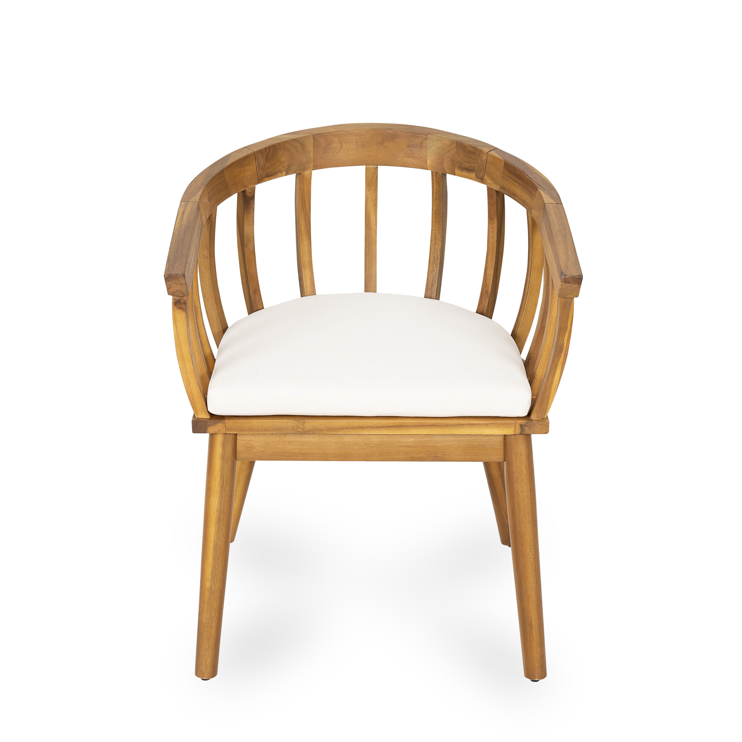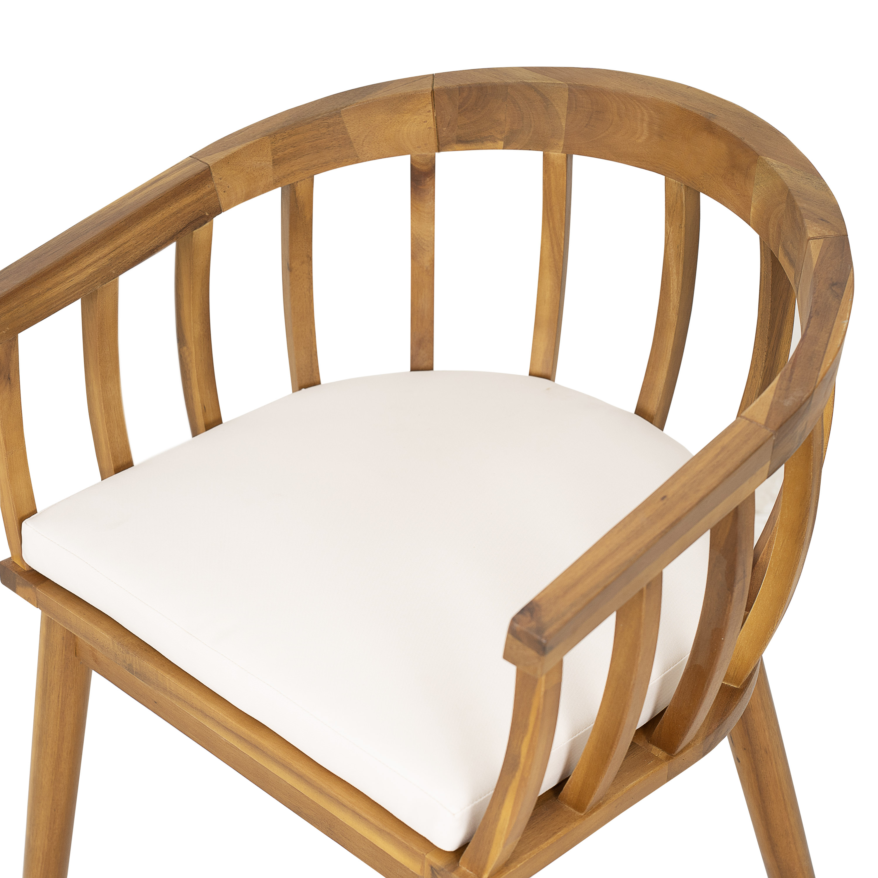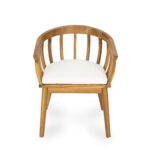 SpecificationProduct Information Product Type :Single Box ProductProduct Name:Klismos Dining Armchair(Set of 2)Place of Origin:Viet NamMain Color:Teak+ BeigeMain Material:Acacia Wood,FabricCushions Included:YesProduct DimensionsAssembled Length (in.):23.50Assembled Width (in.):23.00Assembled Height (in.):29.75Product Weight (lbs.):15.43Package SizeLength (in.):31.25Width (in.):25.25Height (in.):23.00Weight (lbs.):40.79Product FeaturesCrafted Elegance: Solid Wood Dining Chair with Curved Backrest, Elevate your dining space with this exquisitely designed solid wood dining chair, featuring a gracefully arched backrest that merges comfort with timeless aesthetics. Handcrafted from premium hardwood—each piece showcases natural wood grain patterns, ensuring no two chairs are alike.Ergonomic Curved Backrest: The gentle arc of the backrest contours to your spine, providing optimal lumbar support for extended seating comfort.Solid Wood Construction: Built to last, the chair’s robust frame and legs are carved from a single block of wood, minimizing joints and enhancing durability.Sleek, Minimalist Design: Clean lines and a smooth, polished finish blend seamlessly with modern or traditional interiors.Customizable Options: Available in various wood stains, seat upholstery (linen, leather, or velvet), and leg styles to suit your décor.Perfect for intimate family meals or elegant dinner parties, this chair combines artistry with functionality, making it a heirloom-worthy addition to your home.Included: Two (2) Dining ChairAssembly Required