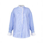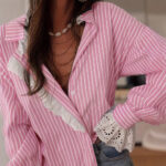 Korean-style Elegant, Effortless Striped Lace-Patchwork Womens Shirt
