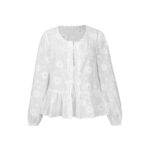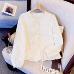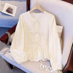Korean-style Instagram-inspired Patchwork Lace Embroidered Long-Sleeve Womens Blouse