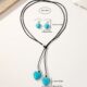 Korean-style Leather Choker Long Necklace And Earrings Set For Women
