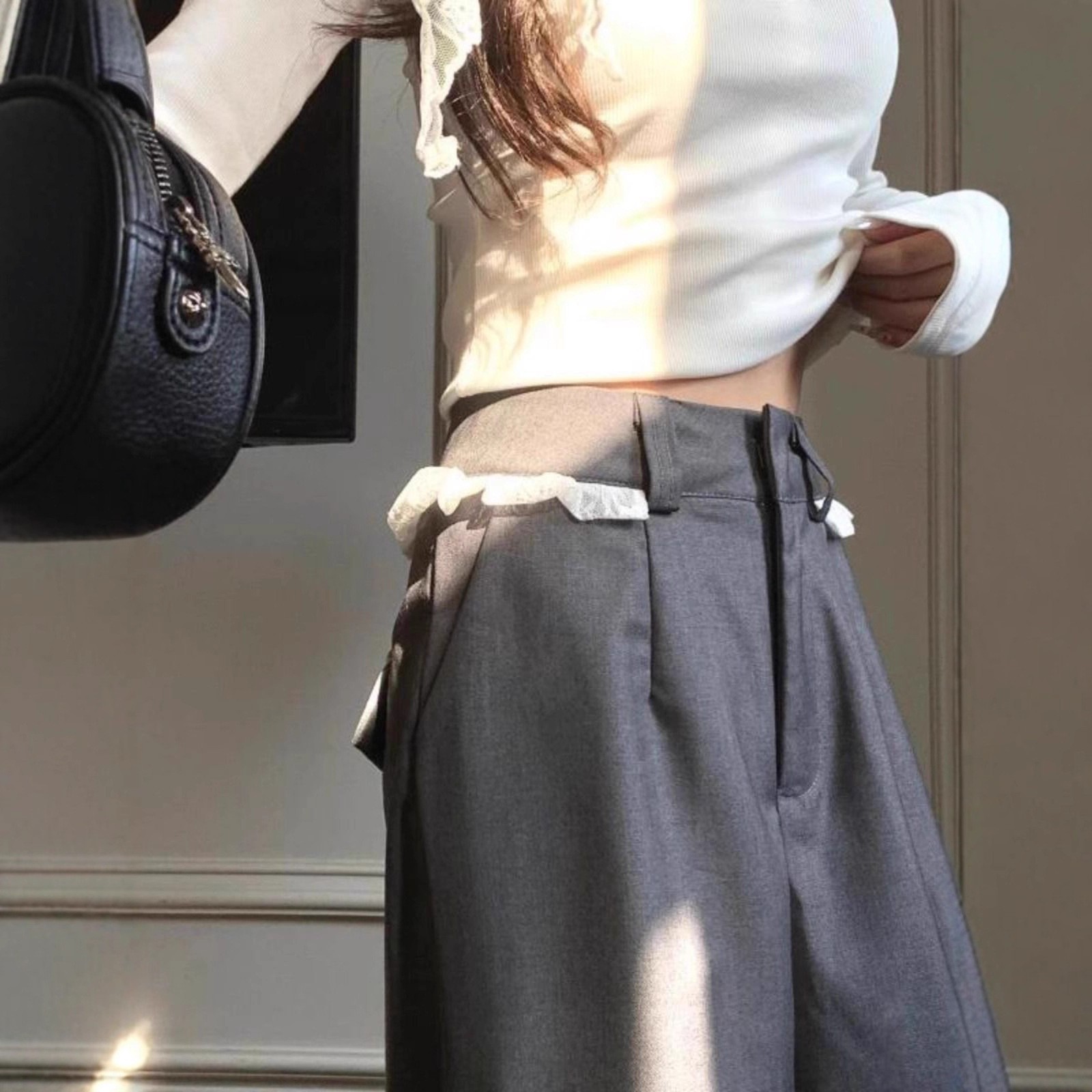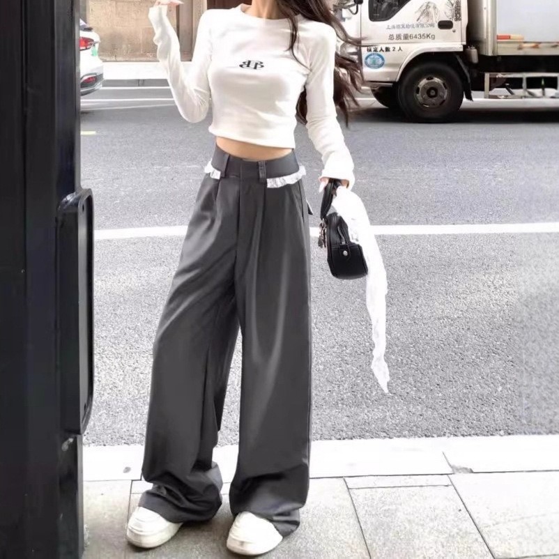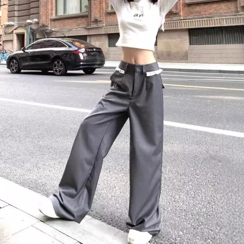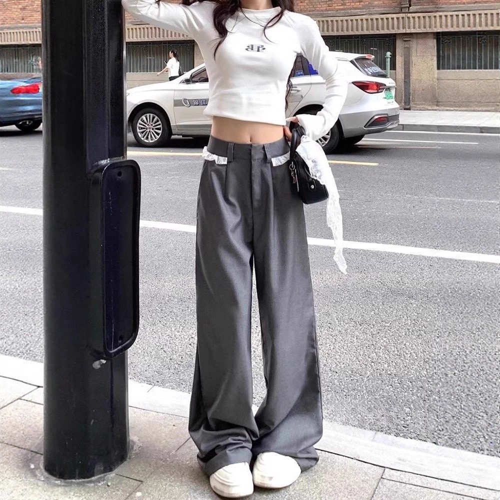 Lace-trimmed Casual Draping Straight-leg Floor-length Wide-leg Pants is designed for style, comfort, and everyday use.