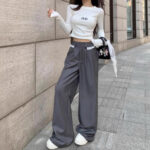 Be the first to review “Lace-trimmed Casual Draping Straight-leg Floor-length Wide-leg Pants”