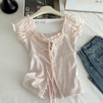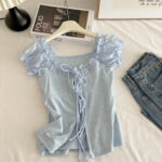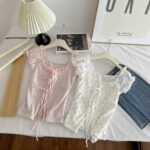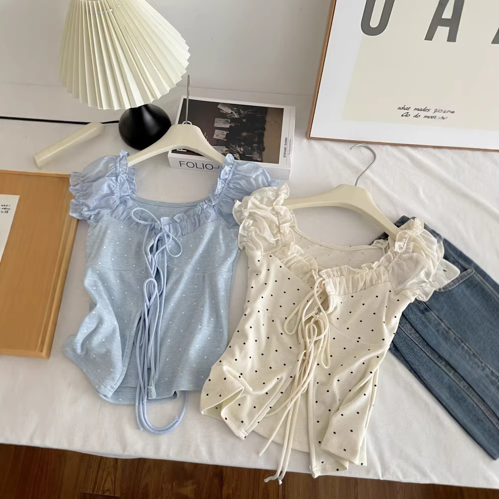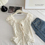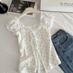 Be the first to review “Lace-trimmed Puff-sleeve Polka-dot Short-sleeve Womens Top”