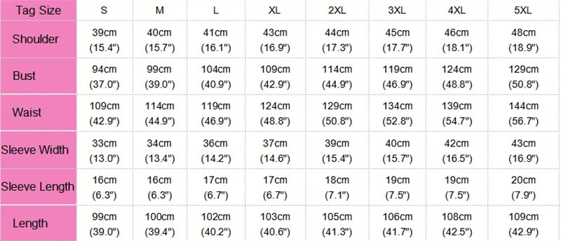 • S, M, L, XL, XXL, XXXL, 4XL, 5XL