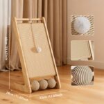 Large Vertical Sisal Cat Scratcher With Balls, Wooden Frame -Sisal Scratching Surface, Hanging Teaser Ball-Sisal Balls, Cat Claw Care & Play Toy