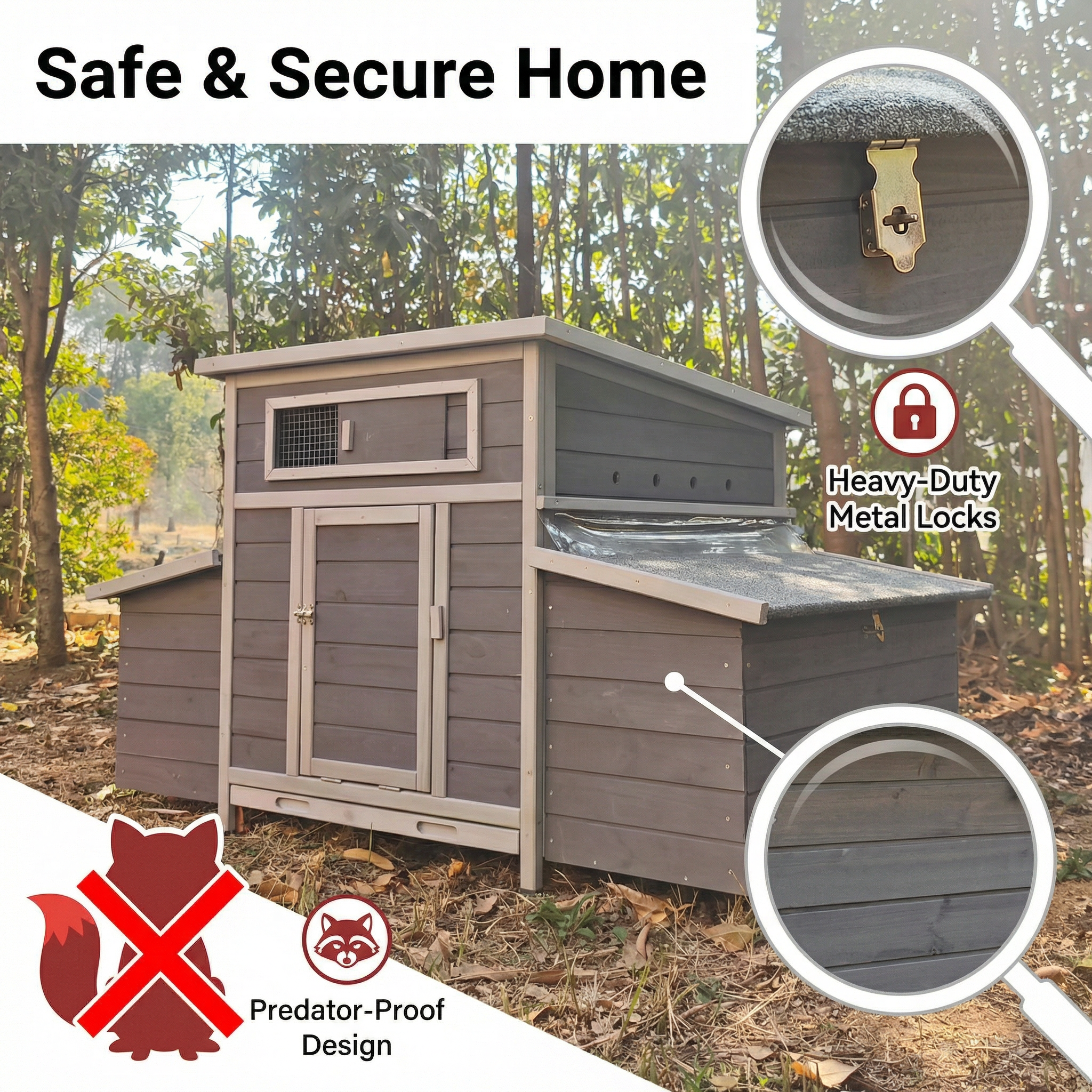 Large Wooden Chicken Coop Outdoor Hen House Poultry Cage For Outdoor With 2 Sides Nesting Boxes