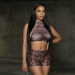 Be the first to review “Leopard-print Halter Crop Top And High-waisted Shorts Set”