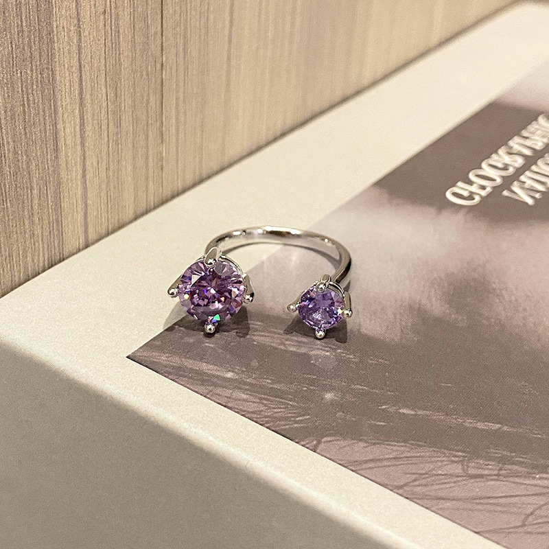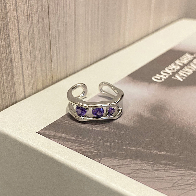 Light Luxury Sweet Cool Geometric Purple Zircon Open Ring Niche Cold Style
