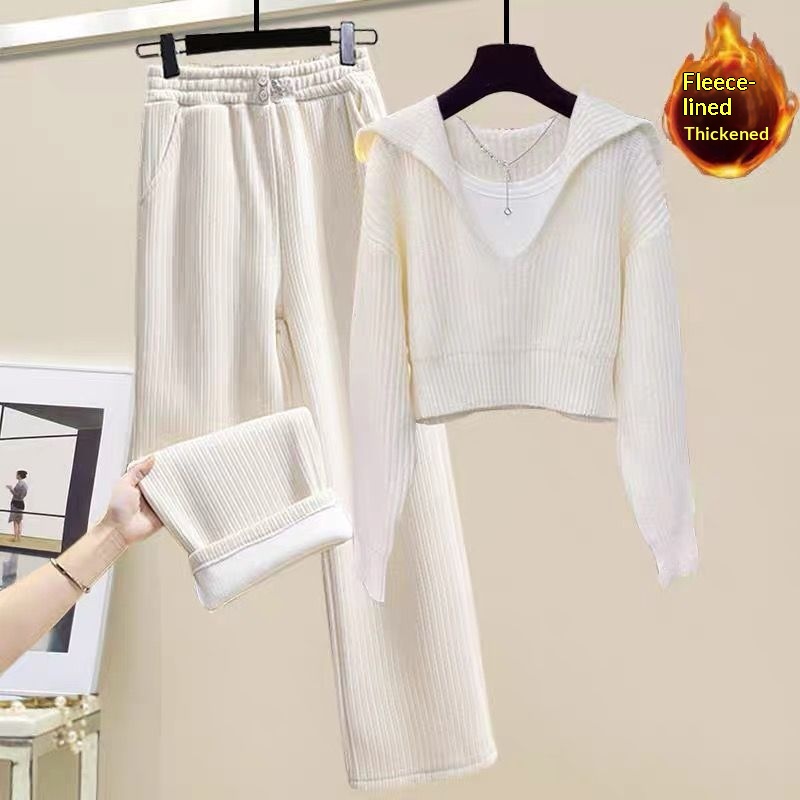 Little Ladys Sweater Set Paired With Wide-leg Pants