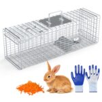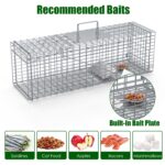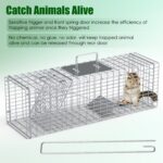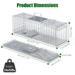 Live Animal Trap Cage 27×7.5x8in Folding Catch And Release Steel Humane Cat Trap For Racoons Stray Cats Rabbits Beavers Hedgehogs Chipmunk Small Animals