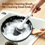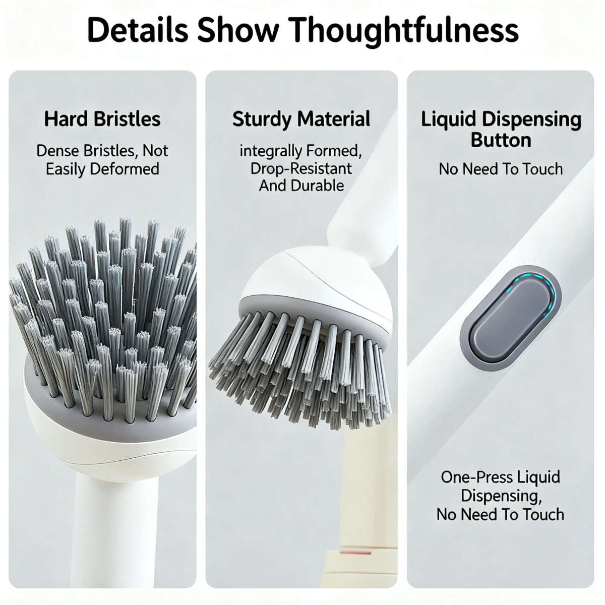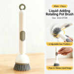 Long Handle Dish Brush With Soap Dispenser, 360 Rotating Pot Scrubber With 6 Adjustable Angles, Non-Scratch Kitchen Cleaning Brush For Pans, Dishes And Sink, Ergonomic Scrub Brush With PET Bristles