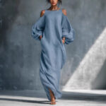 Be the first to review “Long-sleeve Off-shoulder Midi Dress Mid-waist Pullover Style”
