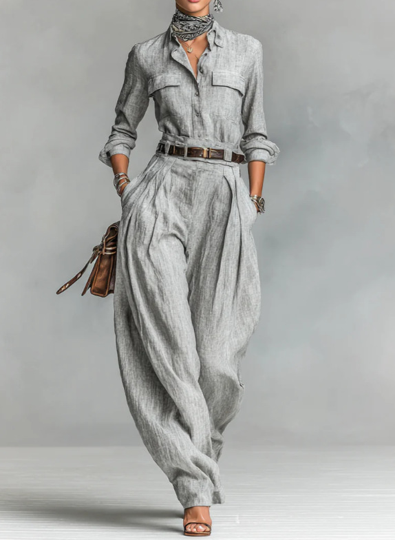 Long-sleeve Shirts And Wide-leg Trousers Offer A Relaxed Stylish And Casual Look