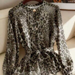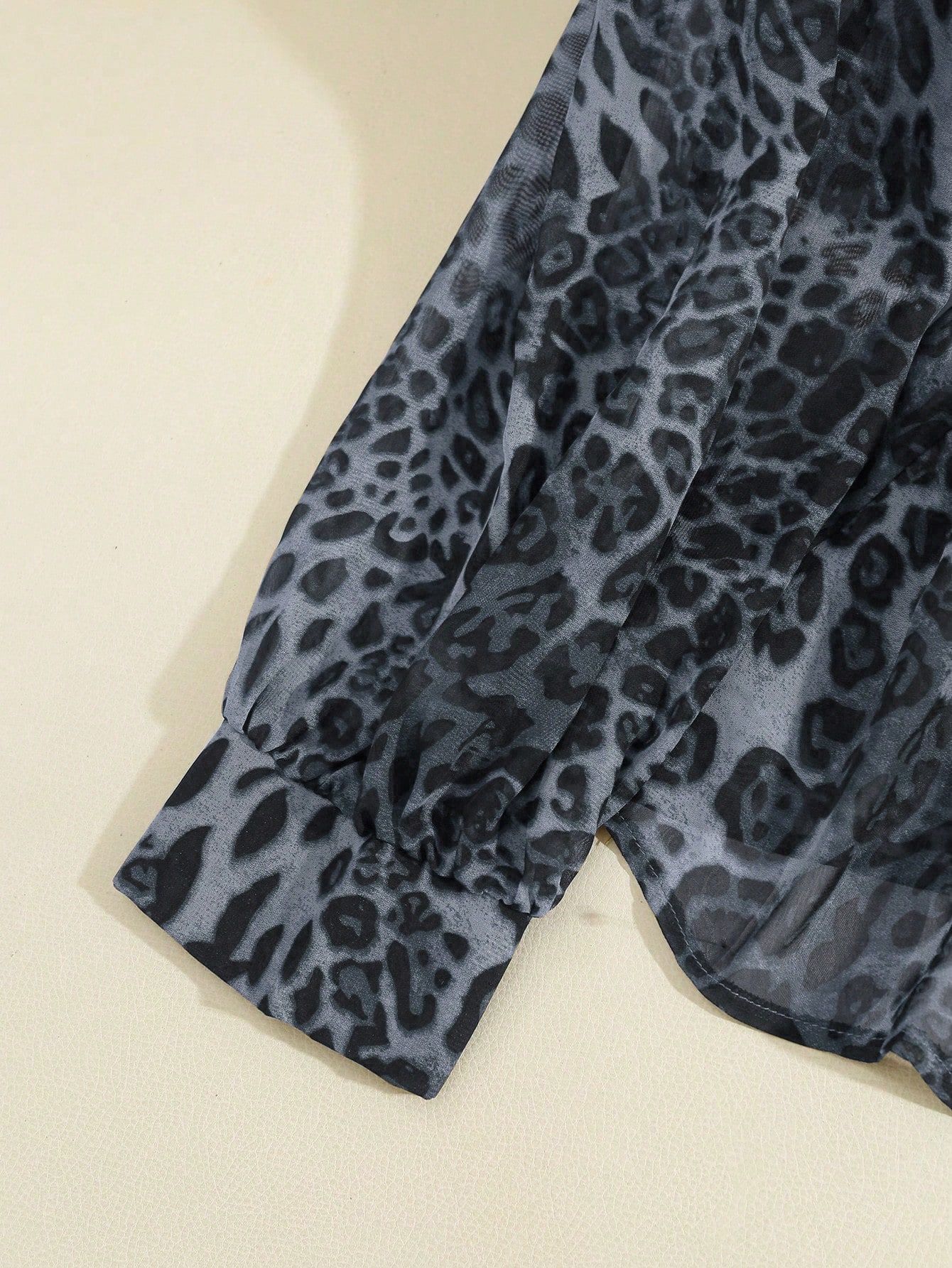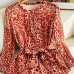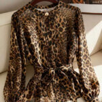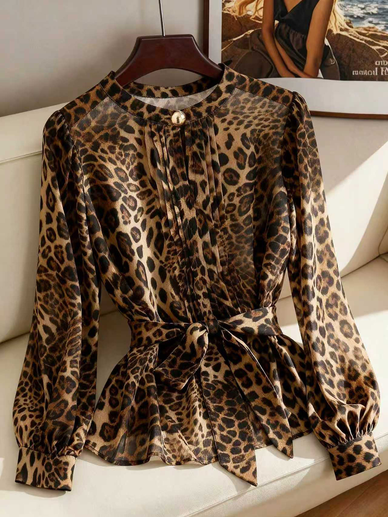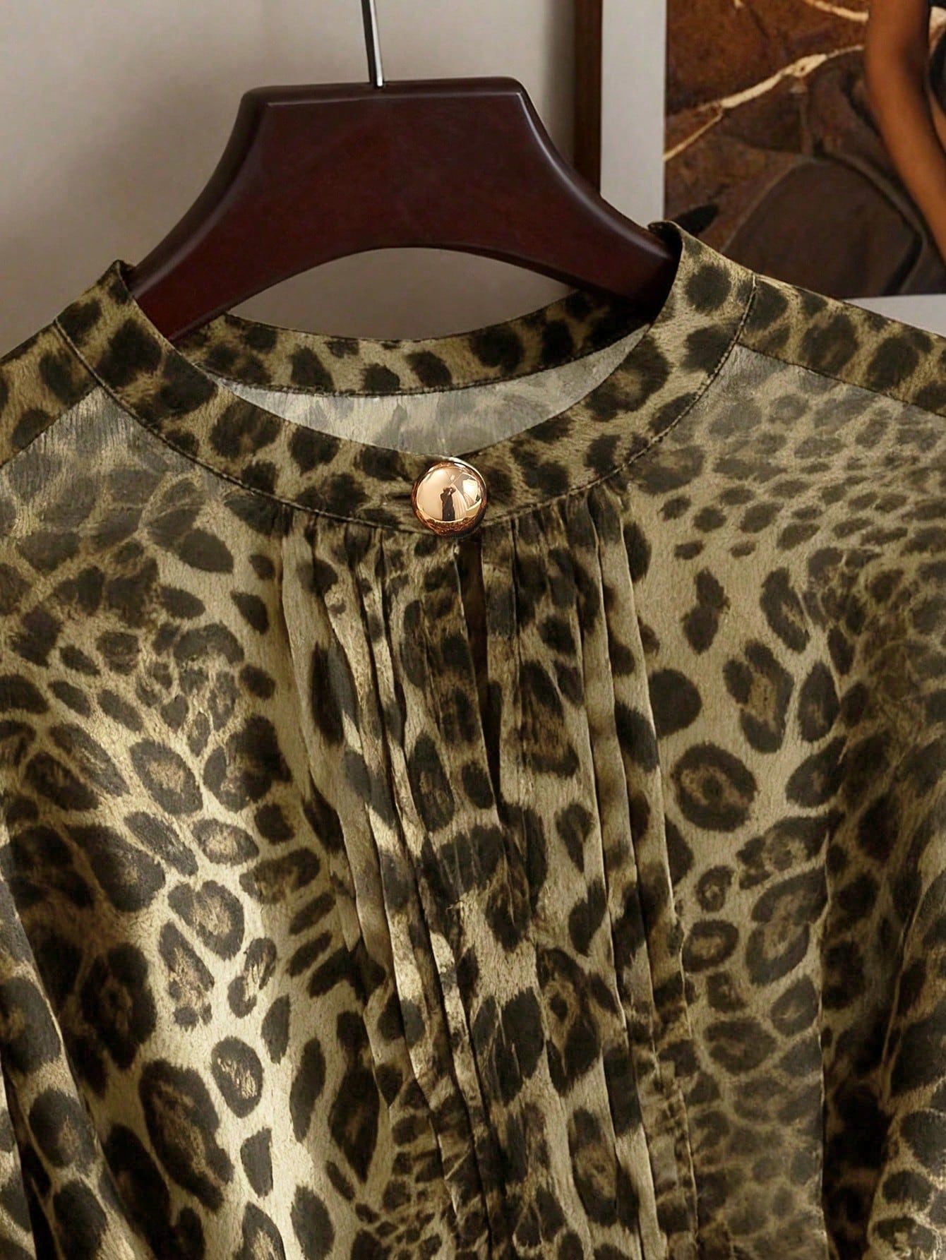 Western/European Style • Animal print, pleated detailing, wrinkle-resistant finish, raglan sleeves, front-button knit top, relaxed fit • Long Sleeve
