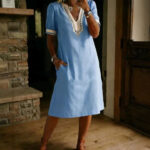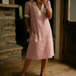 Loose-fit Patchwork Lace Cotton Short-sleeve Dress is designed for style, comfort, and everyday use.