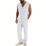 Be the first to review “Loose-fitting Casual Hooded Sleeveless Shirt And Pants Set”