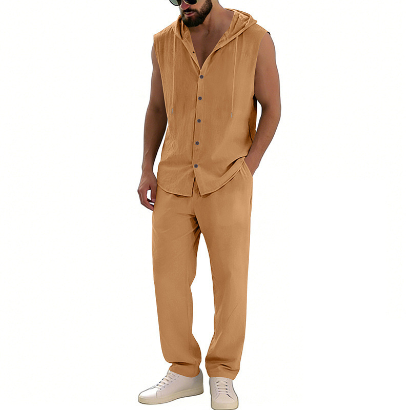 Loose-fitting Casual Hooded Sleeveless Shirt And Pants Set