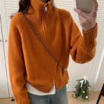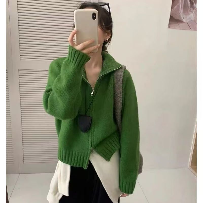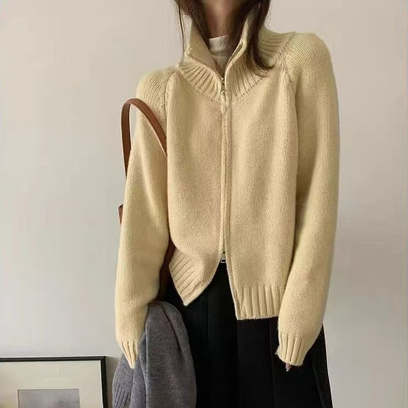 Be the first to review “Loose-fitting Simple Stand-collar Laid-back Knit Cardigan Top”