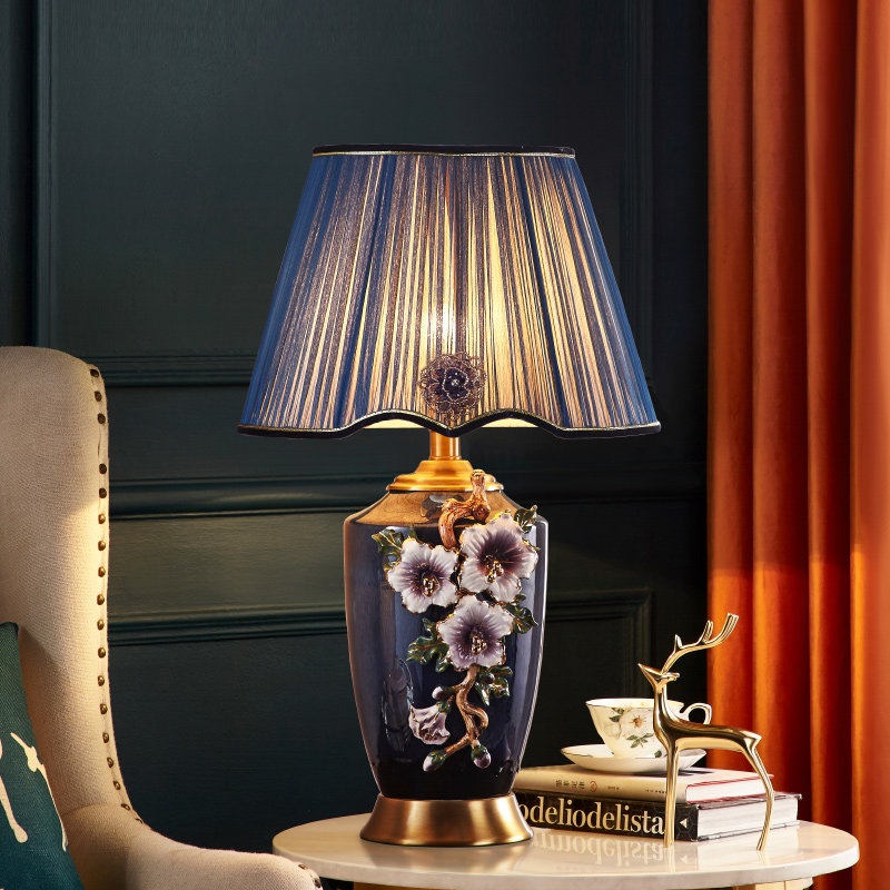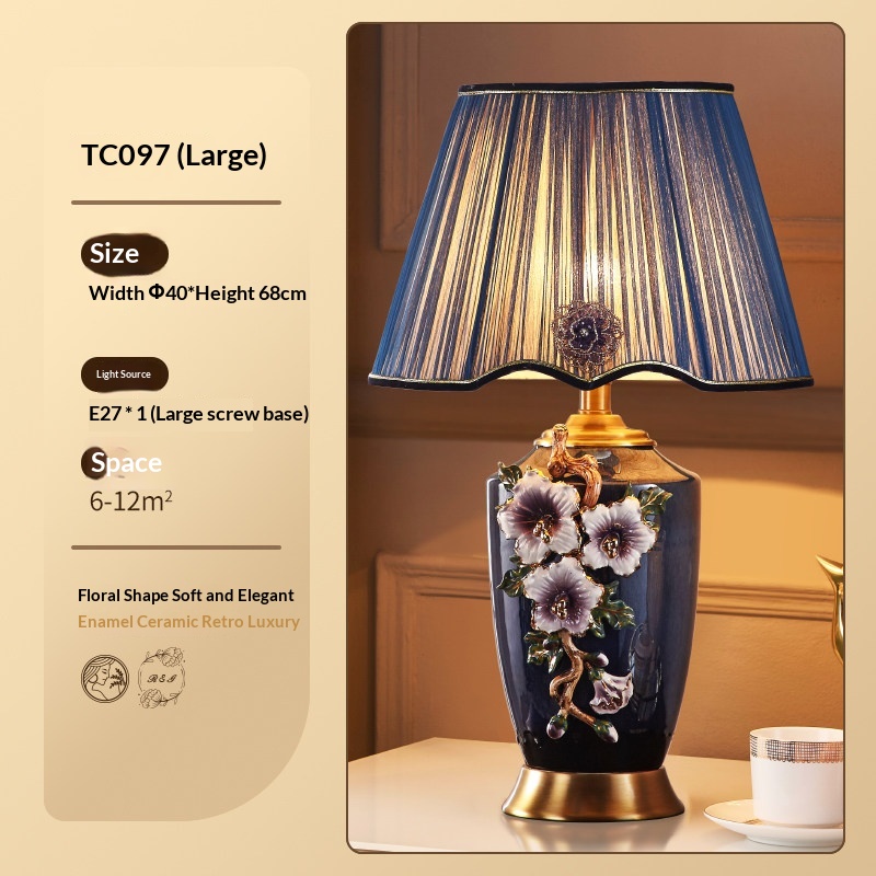 Luxury New Chinese-Style Ceramic Enamel-Glazed Brass American-Style High-End Table Lamp