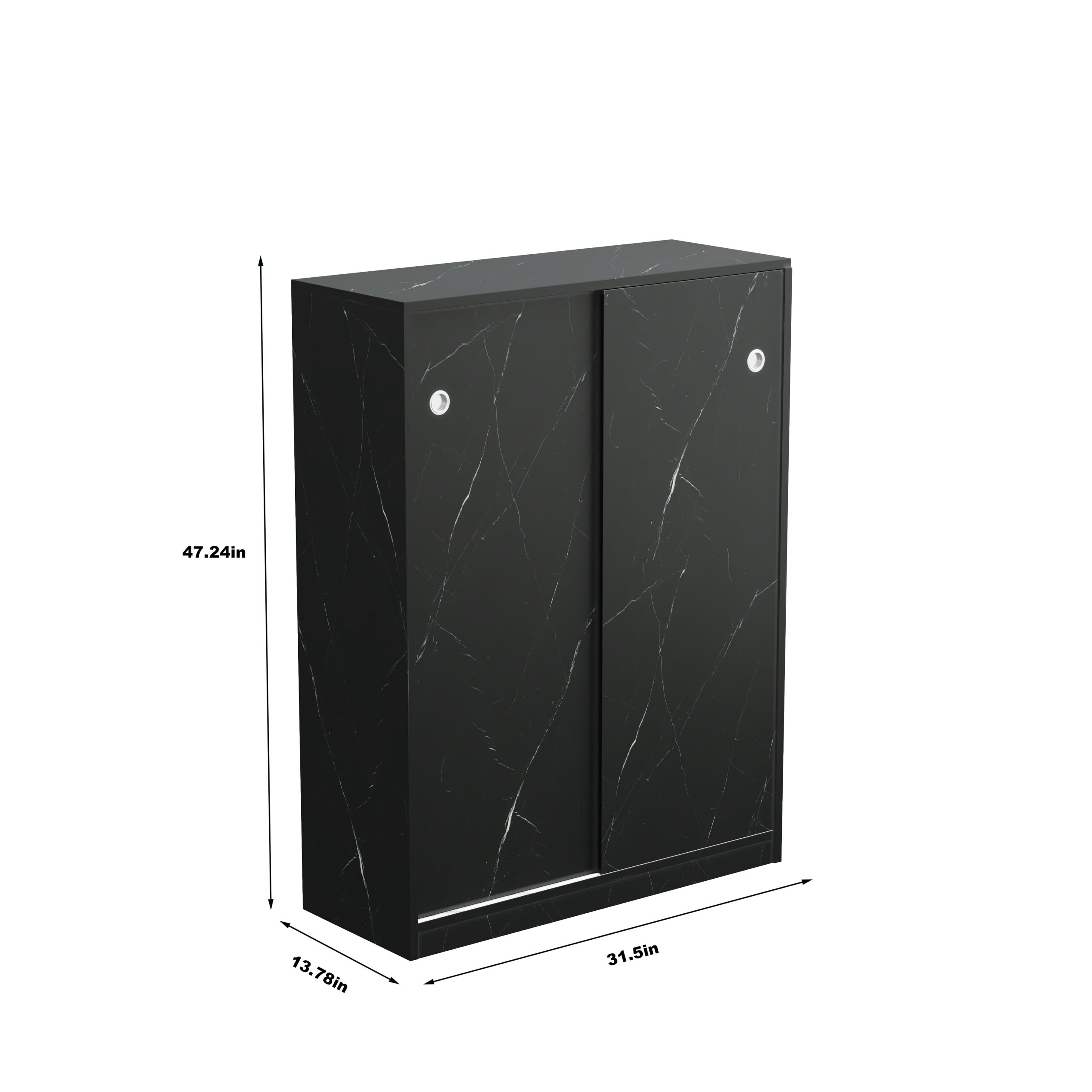 - Single Box ProductProduct Name:Marble black shoe cabient with sliding door have 6 layers can storage at least30 pairs shoesPlace of Origin:ChinaMain Color:BlackMain Material:Particle BoardProduct DimensionsAssembled Length (in.):31.50Assembled Width (in.):13.78Assembled Height (in.):47.24Product Weight (lbs.):85.80Package SizeLength (in.):51.00Width (in.):15.00Height (in.):9.00Weight (lbs.):90.00Product FeaturesThe white minimalist design can be applied to every family styleThe design of sliding doors is more convenient6 layers can store at least 30 pairs of shoesMarble white sliding door shoe cabinet with movable partitionDescriptionsLarge capacity sliding door shoe cabinet: The sliding door is designed for easy storage and saves spChanging shoes and going out, creating an ideal porch to meet the needs of daily item storage and entry, making it more convenient when going out.Large capacity storage cabinet: Reasonable partition storage space, orderly placement of shoes of alSpace saving solution: Our shoe rack/cabinet is designed to maximize space utilization and is an excellent addition to any room. Whether placed in the foyer, bedroom, or closet, it can effectively organize your shoes without taking up too much space.