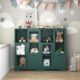 MDF Painted Cabinet With Glass Doors And Drawer, Open Storage Space, Green ,Bedroom, Living Room